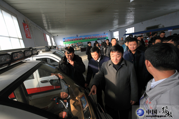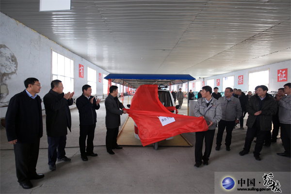 县委副书记、县长杨春辉为首台电动车下线剪彩
